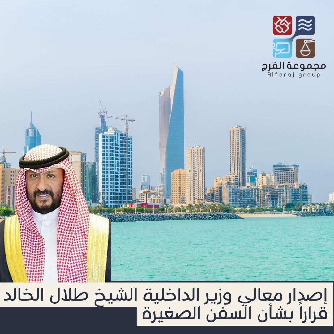 تتقدم #مجموعة الفرج بالشكر الى معالي وزير الداخلية الشيخ طلال الخالد الصباح وذلك لاهتمامه بالسلامة البحرية والتوجيه بالارتقاء بمعايير السفن الصغيرة وذلك من خلال قراره الأخير رقم ١٠٦٢ لسنه ٢٠٢٣ بتاريخ ٢٠٢٣/٩/٢١ بشأن قواعد السلامة البحرية الخاصة بالسفن الصغيرة وإلزام اللانجات والطراريد والمسجله بادارة النقل البحري بتركيب أجهزة التعريف الآلي (AIS) وذلك لتحديد المواقع السفن